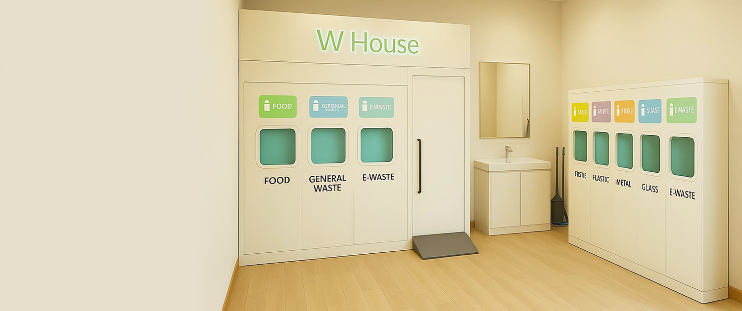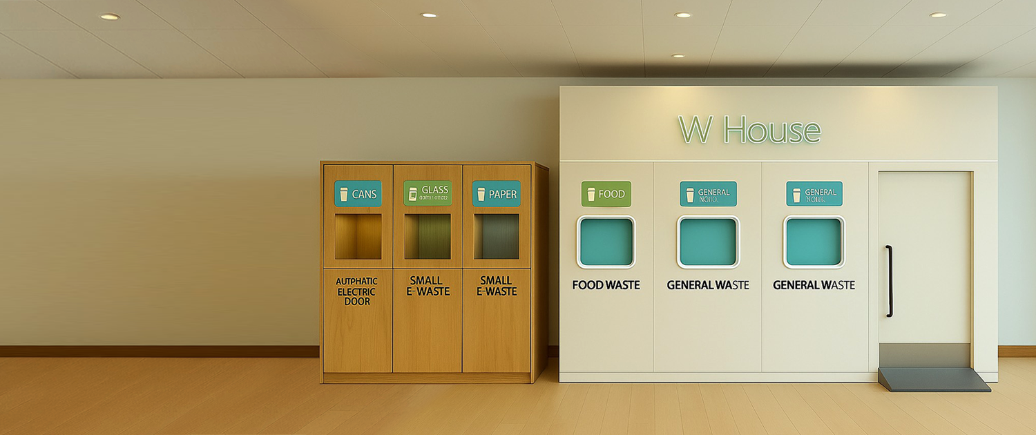 - 垃圾處理空間規劃: 垃圾投擲與垃圾清運動線、設備設置位置、設備所需空間大小及各項設施位置規劃。