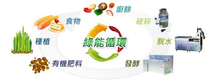 前端設備破碎廚餘末端設備生成有機肥料,不管機器與菌種完全符合國家衛生檢定合格標準,系統功能超越歐美廚餘處理方式,家庭儲於直接轉換為社區有機肥料,無需人力、不耗時間、沒有臭味,生活的便利也成了環保的助力,環保效率百分百。